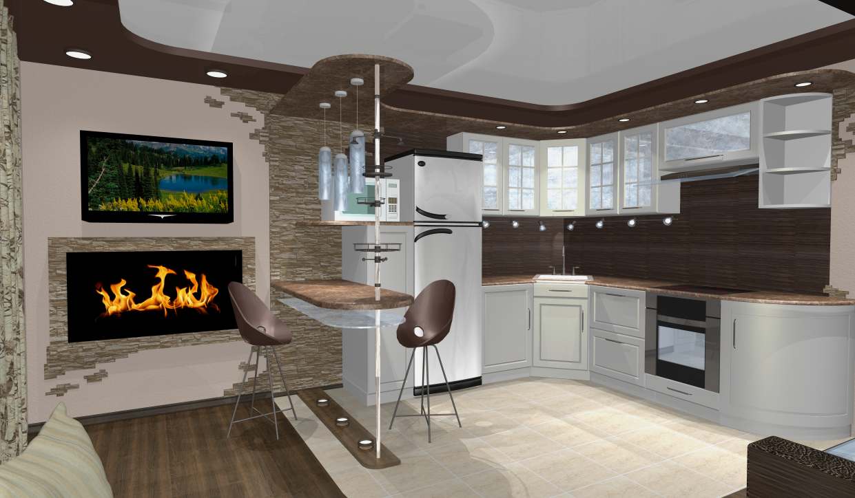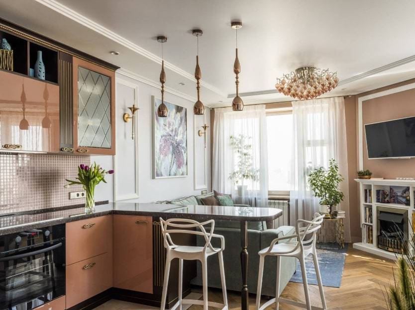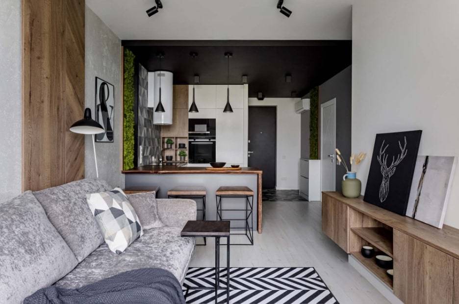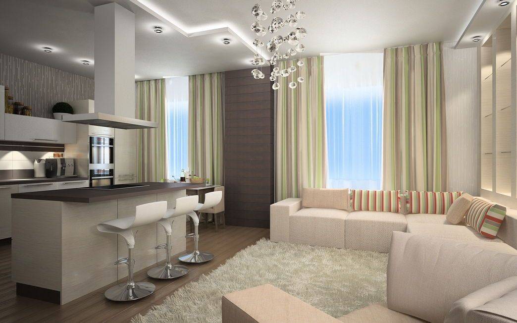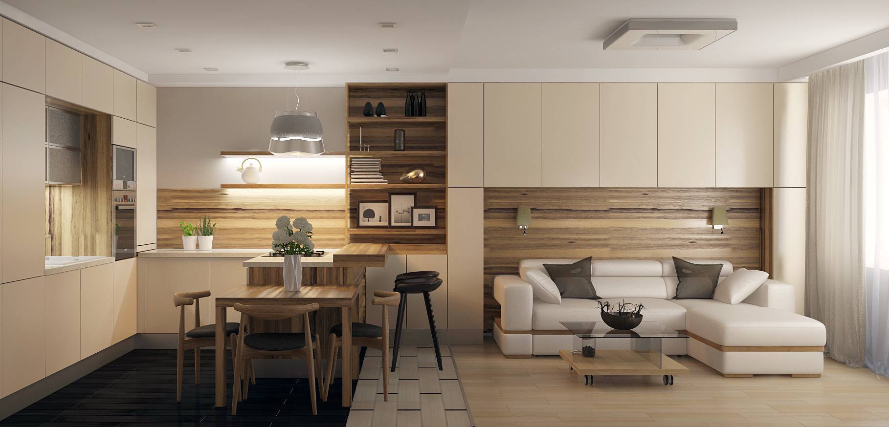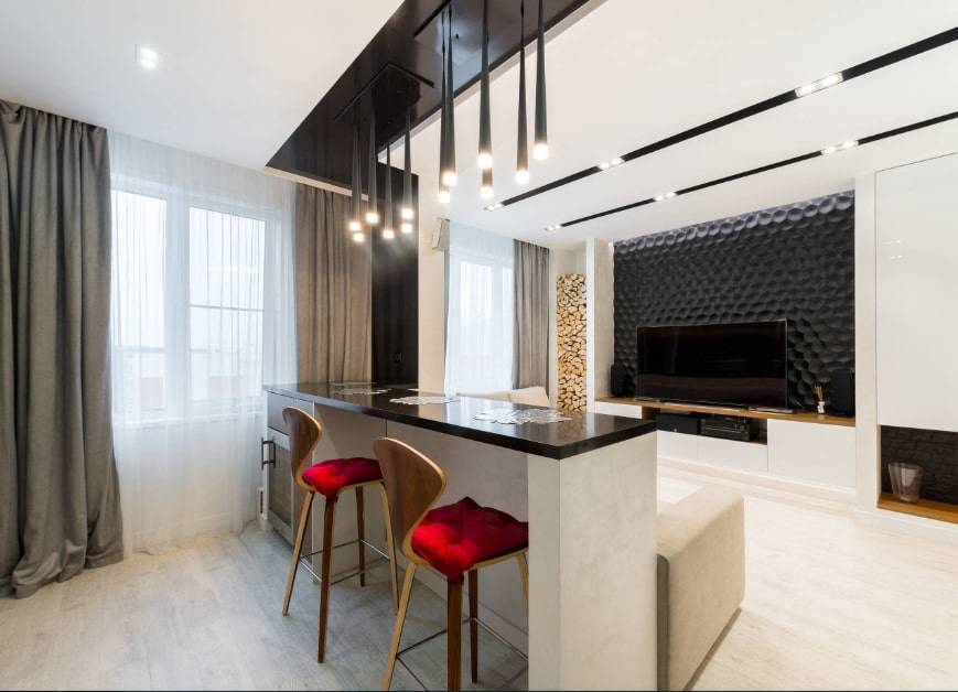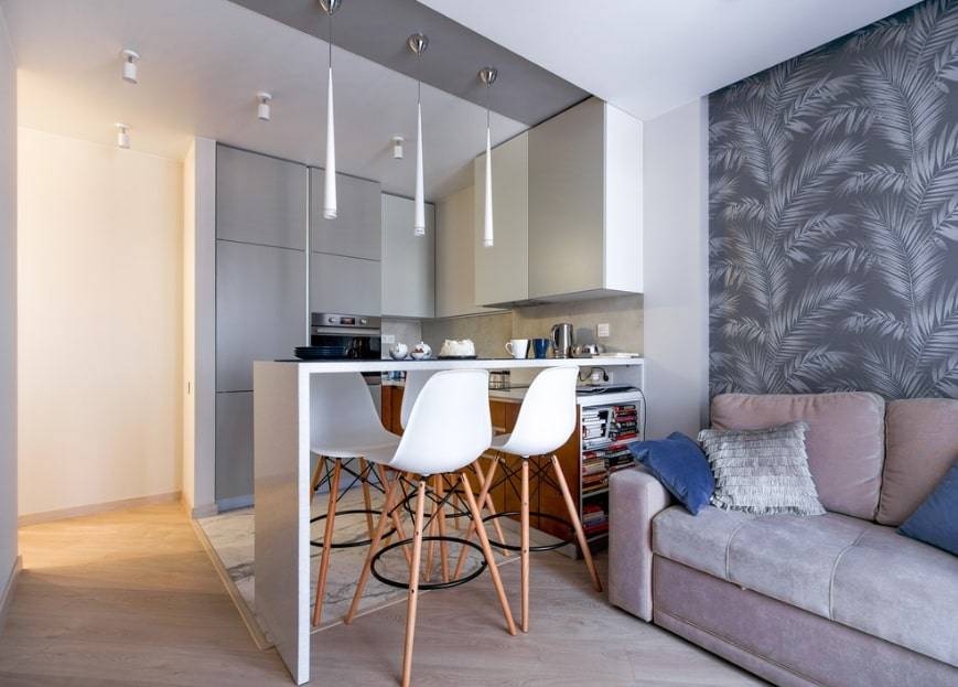 Идеи кухни гостиной в небольшой комнате с барной стойкой