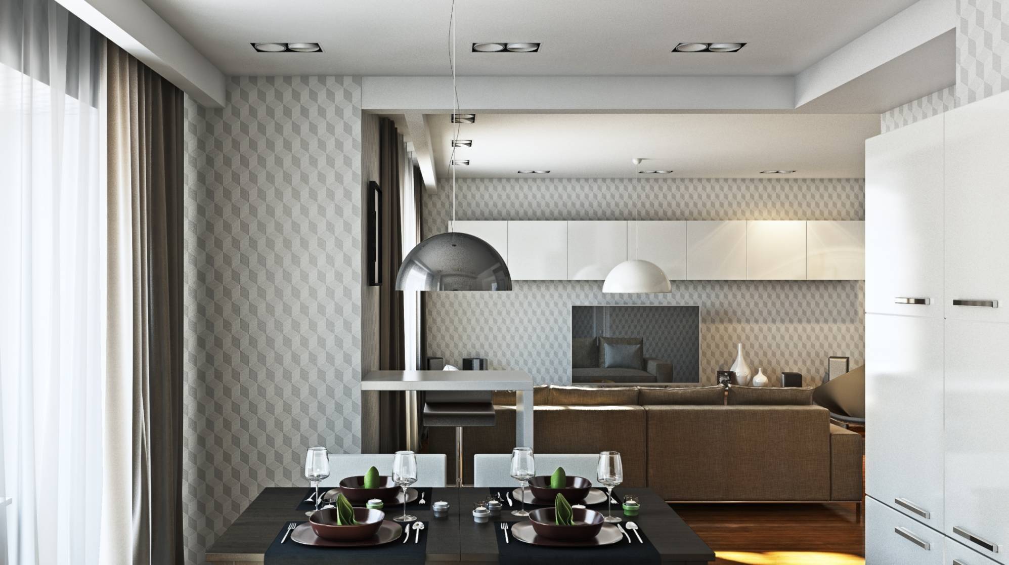 Хотите создать из малогабаритной кухоньки и не особо просторной гостиной изумительный дизайн объект? Ваш выбор – композит минимализма и арт-деко.