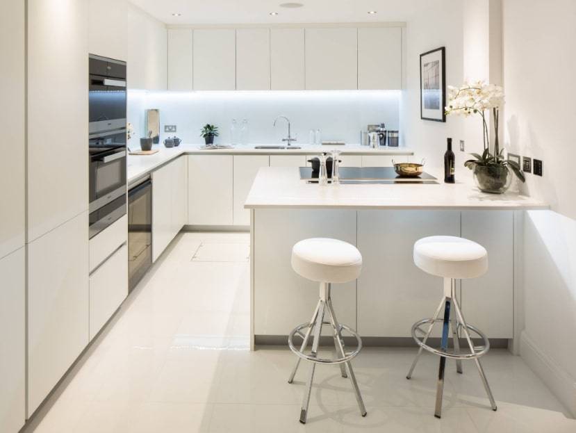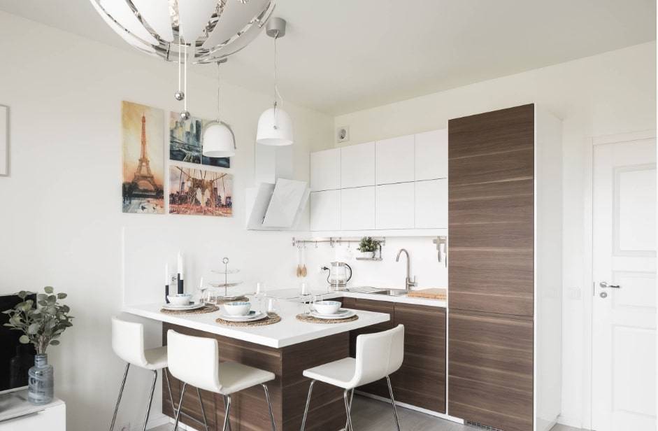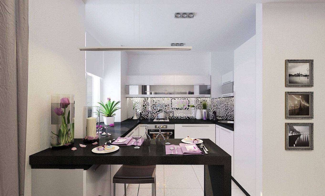 - за барной стойкой небольшой кухни не получится разместить более четырех человек. Поэтому она не подходит для празднований и семейного обеда.