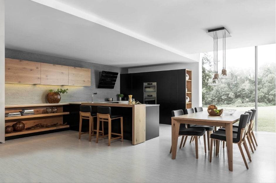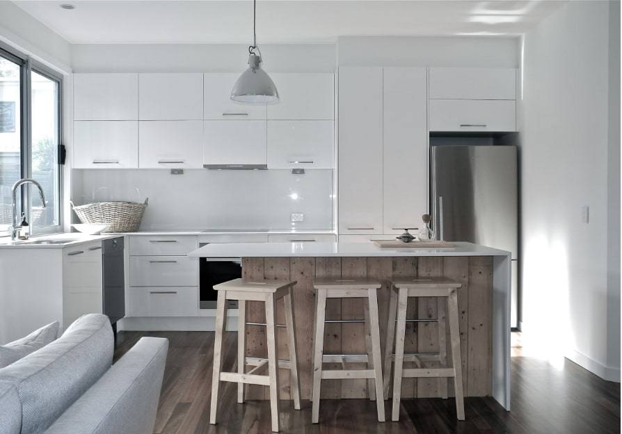 Существует несколько вариантов, при которых барная стойка будет замечательно комбинироваться с кухонным островом. При выборе того или иного варианта необходимо отталкиваться от параметров пространства и ожидаемого результата.