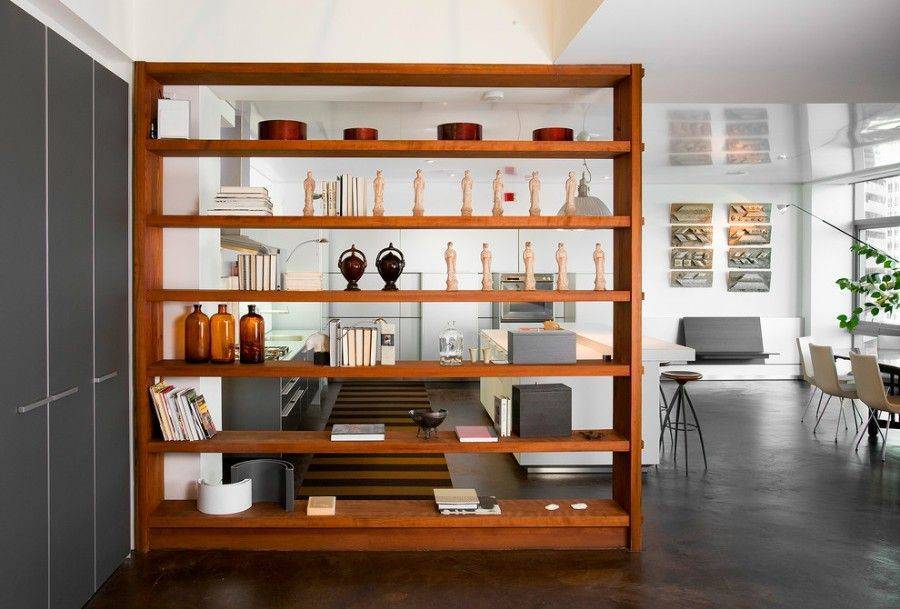 - Перегородка. Также популярный вариант для кухни-гостиной, способный зонировать пространство, отделяя зону отдыха от кухни.
