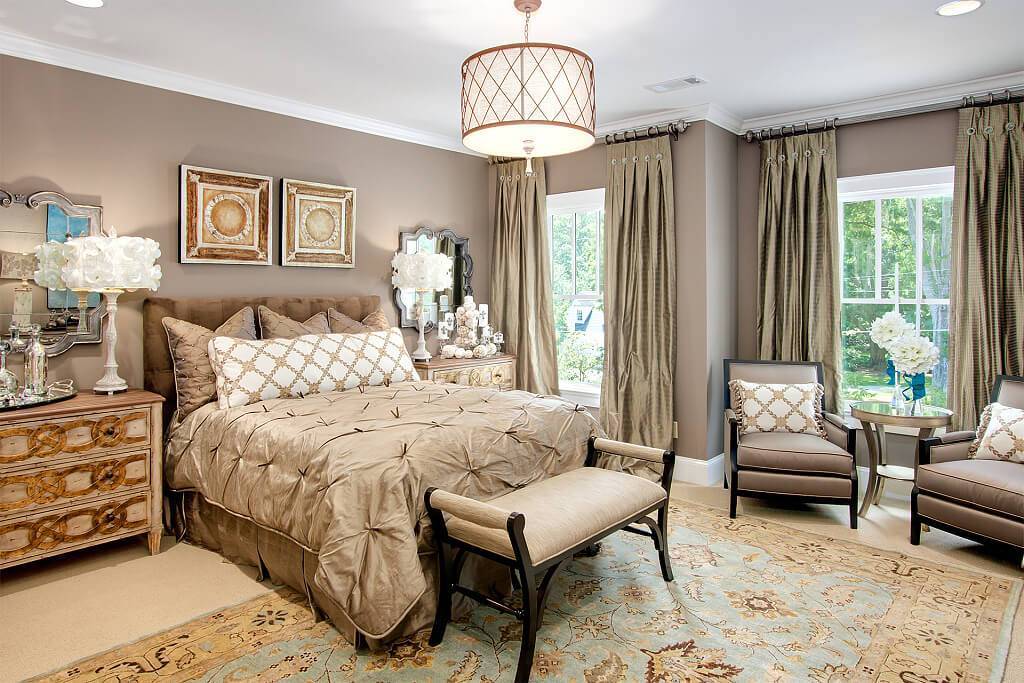 Даже если в спальне достаточно свободного места, к выбору мебели нужно подходить со всей серьезностью. «Старомодный» не значит «винтажный» — советским стенкам в спальне не место, а вот старинные люстры идеально впишутся в дизайн