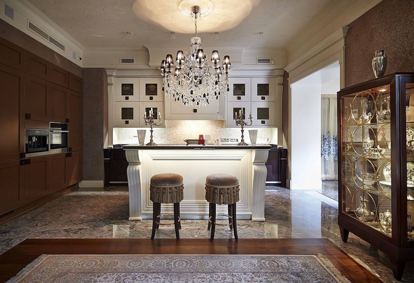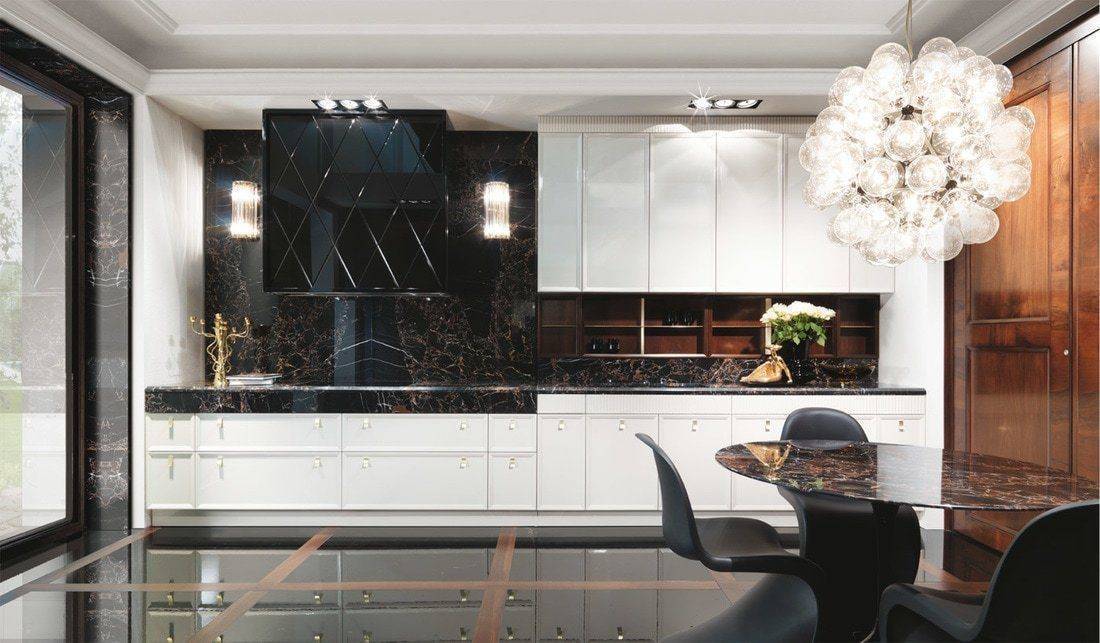 Большая люстра – основная черта стиля арт деко. Без нее кухня превратится в обычную классику