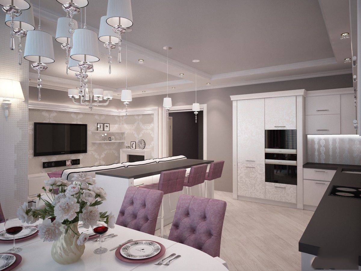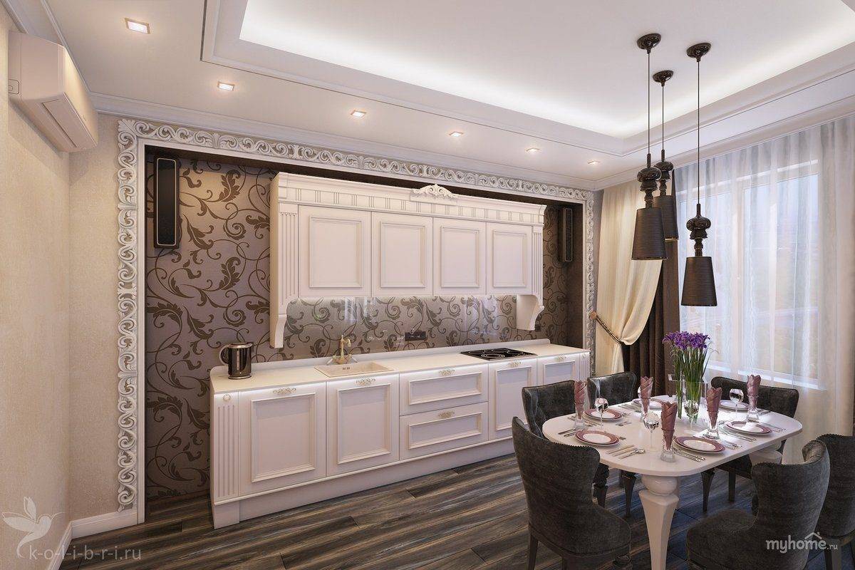 Цветовая палитра — плавные переходы и простая ступенчатость. Краски должны подчеркивать зональность помещения, выделяя что-то одно. Прочитайте нашу статью, с советами экспертов как правильно сочетать обои в интерьере кухни.