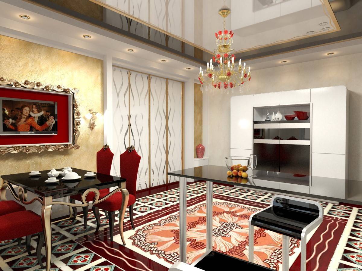 Яркий, броский и пафосный, это стиль «звезд», медийных персон и людей амбициозных, желающих стать заметными и известными. Создание уюта в этом случае – цель не самая приоритетная.