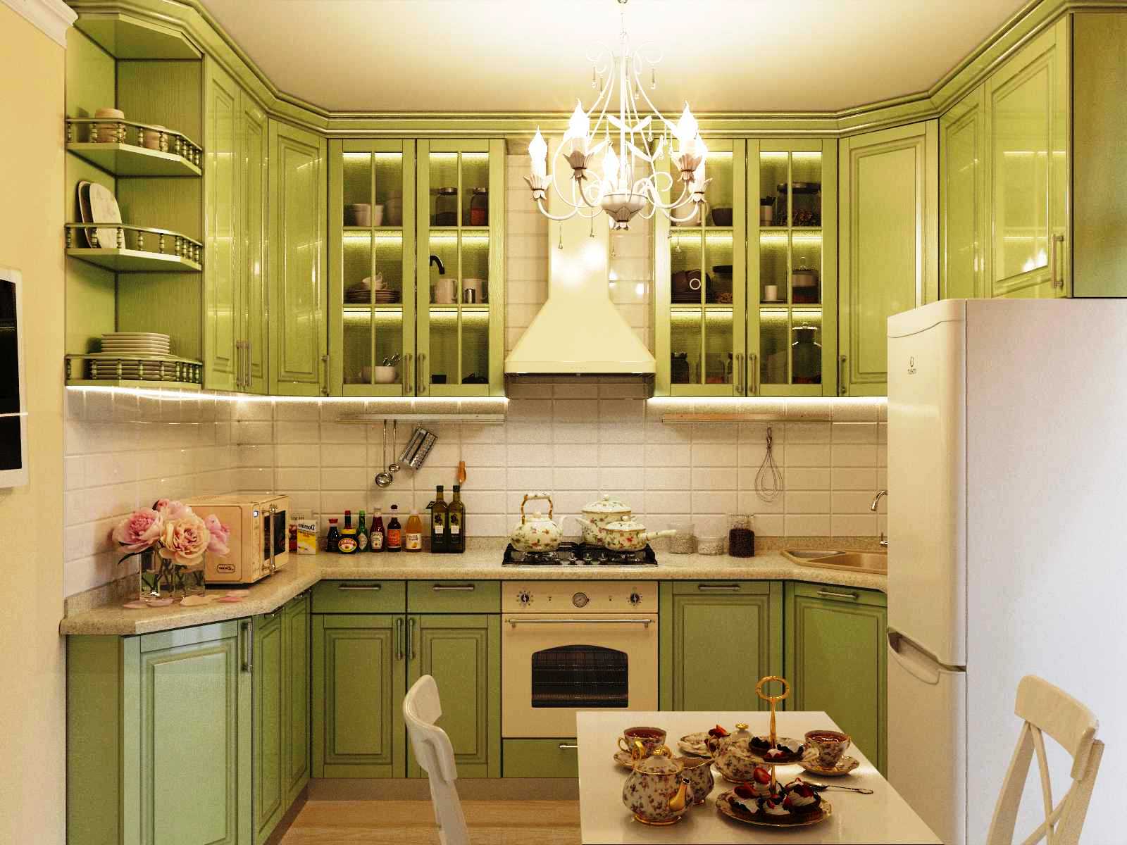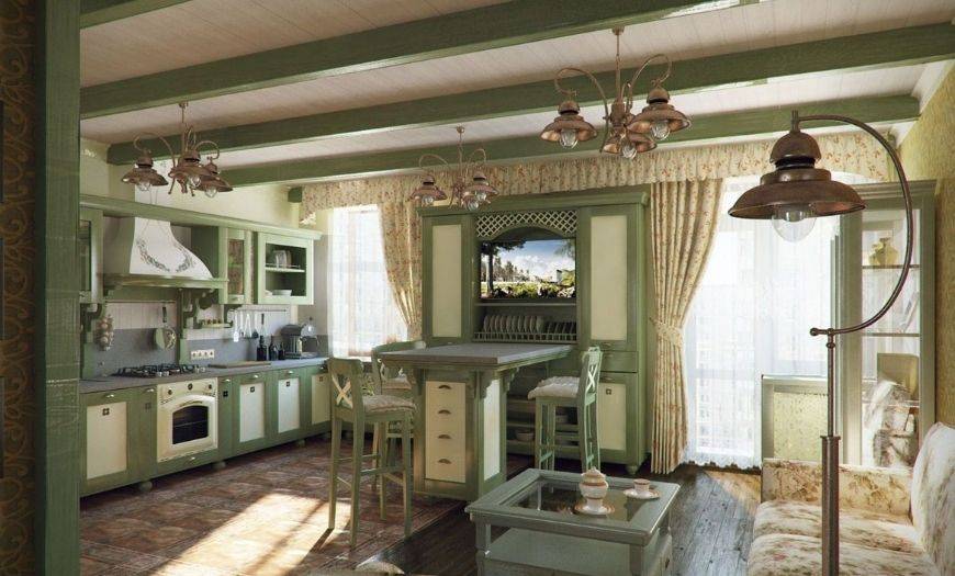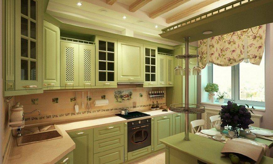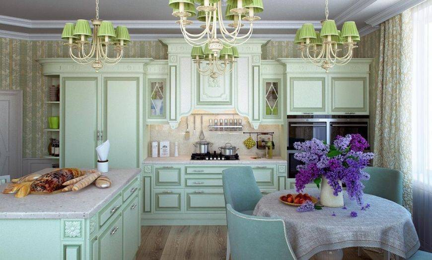 Кухня в стиле прованс салатового цвета