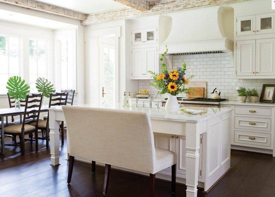Белый цвет придаст помещению света и простора. Благодаря большой палитре оттенков кухня «оживает», т. к. равномерный белый тон вызывает ощущение стерильности.