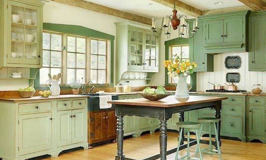 Кухня в стиле прованс фисташкового цвета.