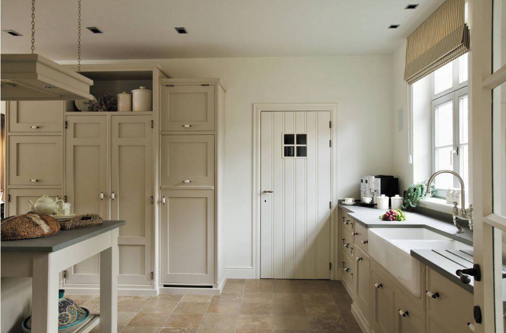 Полностью бежевая кухня скорее характерна для стиля кантри, а в провансе хороши вставки бежевого колера. Они гармонично сочетаются с белым оттенком и делают его более живым и уютным.