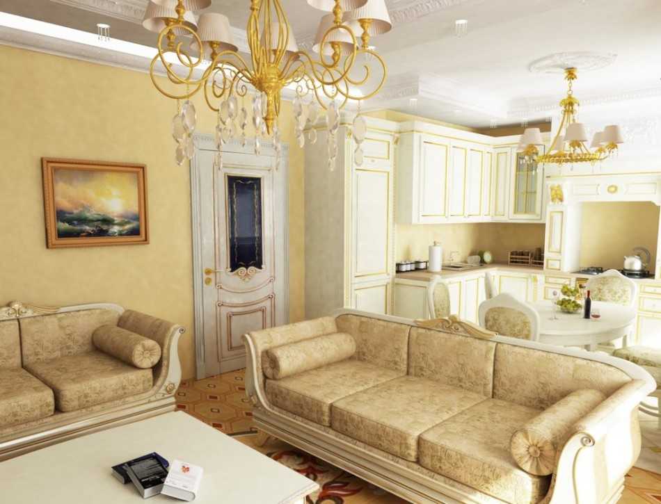 Не все хозяева могут позволить себе просторную квартиру для дизайнерских экспериментов – что же делать, если полезная площадь колеблется в рамках средних значений? В условиях современных реалий будет уместна объединенная кухня-гостиная в классическом стиле – такая планировка позволит расширить пространство. Функциональное зонирование обеспечит кухонный или барный остров. Помните, что обязательный атрибут смежных помещений – мощная кухонная вытяжка.