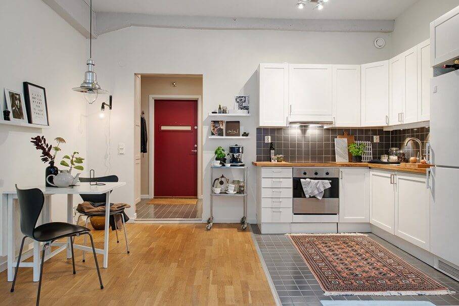 Скандинавская кухня — это место, где функциональность является наиболее важной. Вот почему скандинавские кухни просто меблированы, но в них помещаются все необходимые аксессуары