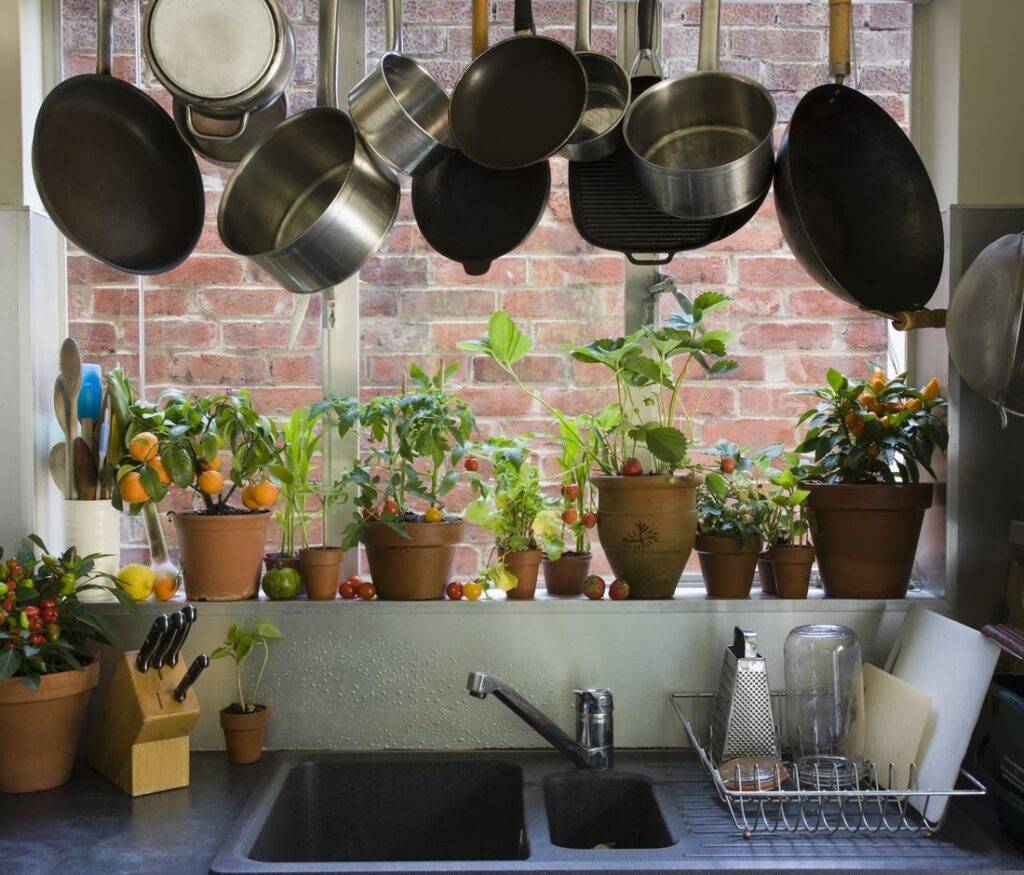 Растения в качестве украшения на кухне