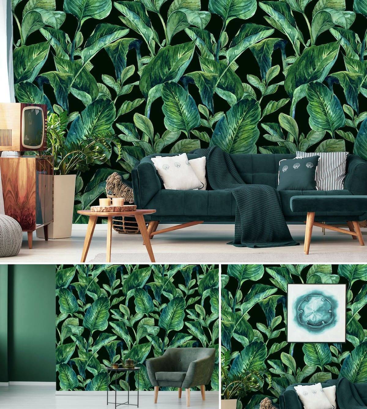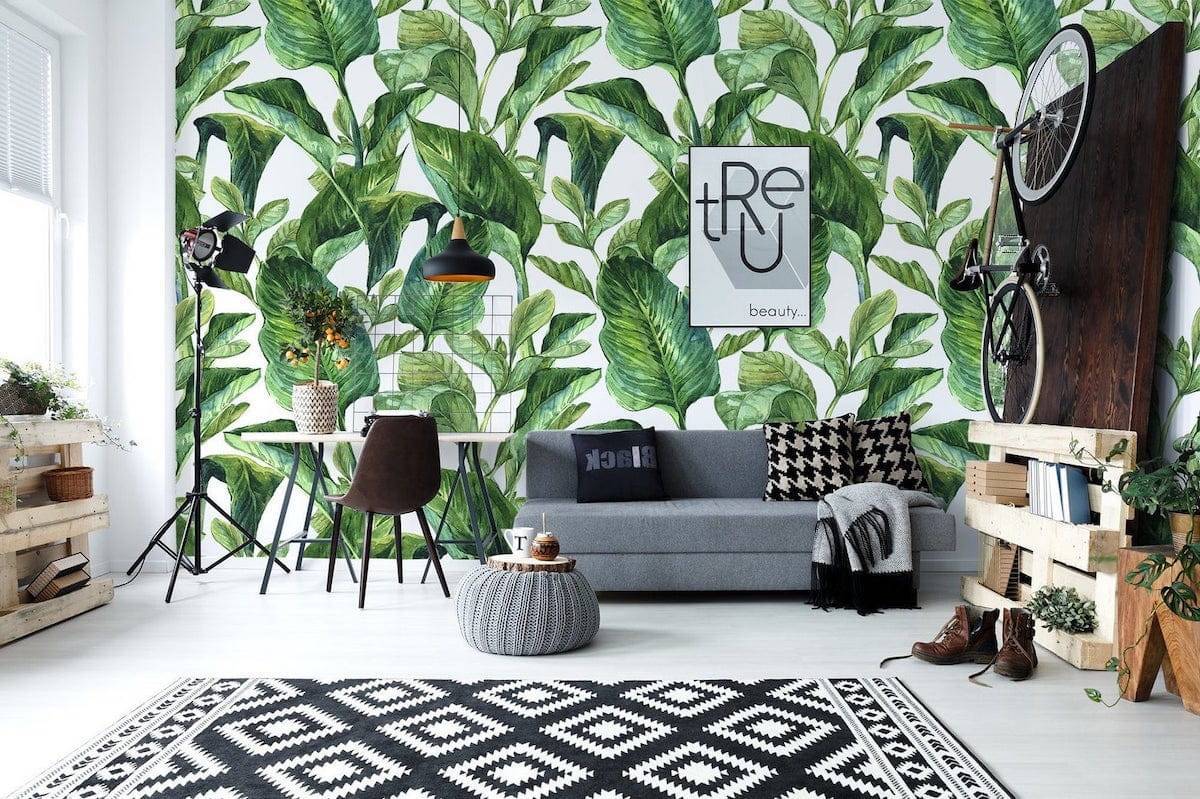 Обои с зелеными растениями освежают комнату