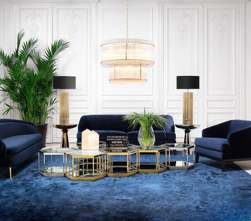 Актуальны сегодня тёмные оттенки синего и зелёного. Синий цвет, благодаря своему большому количеству разнообразных оттенков, часто встречается в интерьерах. По своему эмоциональному наполнению синий благотворно влияет на нервную систему, он успокаивает и уравновешивает. Синий цвет также гармонично сочетается с другими цветами.