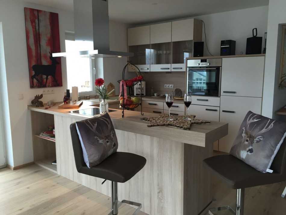 Барная стойка — стандарт. Удобное и современное решение, многократно протестированное на практике.