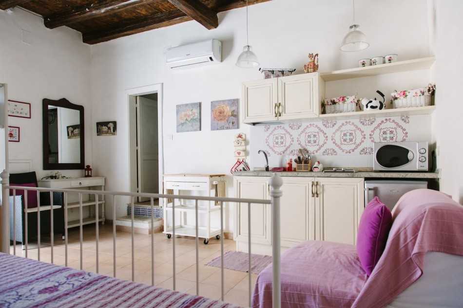 Также для сохранения воздушности в помещении, лучше использовать модульные мебельные предметы или конструкции-трансформеры, нежели устанавливать монолитные изделия. В отделке желательно применять натуральные и экологичные материалы, так как, под постоянное проживание отводится только одна комната.