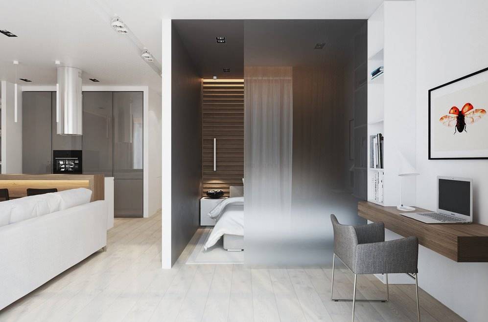 В квартире-студии спальня расположена за перегородкой