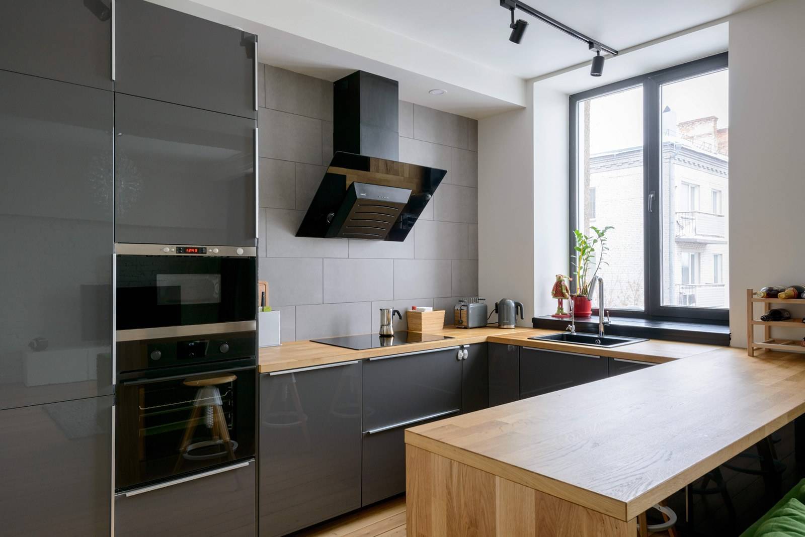Один из таких вариантов обязательно подойдет для обустройства компактной кухни. Значительно расширить пространство поможет планировка кухни с балконом — стену между ними можно убрать, оставив лишь основание под окном. Из него можно соорудить барную стойку, одновременно выполняющую роль обеденного стола.