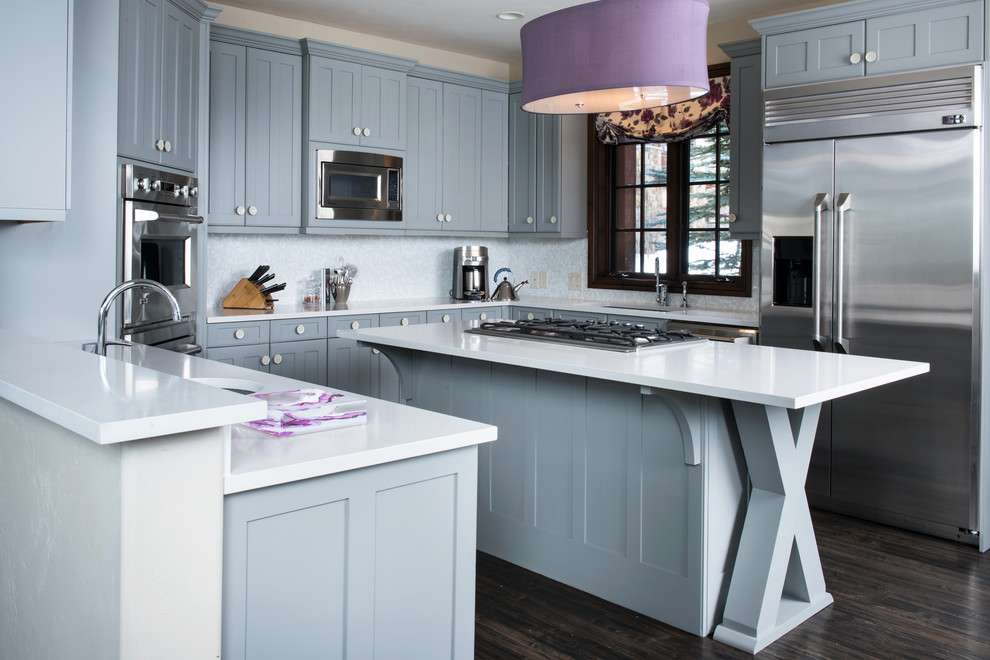 Буква П будет работать не только на закрытых кухнях, но и на открытых. В этой ситуации вы можете использовать одну из стоек шкафа для создания модного рукава. Вы можете также относиться к таким кухонным гарнитурам как к мини-перегородкам, которые отделяют гостиную от кухни — у стойки можно поставить светлый книжный шкаф или телевизор. Тогда не забудьте придерживаться принципа золотого рабочего треугольника. И так, в начале левой строительной дорожки, поставьте холодильник и организуйте кладовку. Далее спланируйте территорию приготовления и в самой короткой части перпендикулярной столешницы разместите раковину. Шкафы, расположенные сбоку от гостиной, могут быть как барной стойкой, так и столешницей.