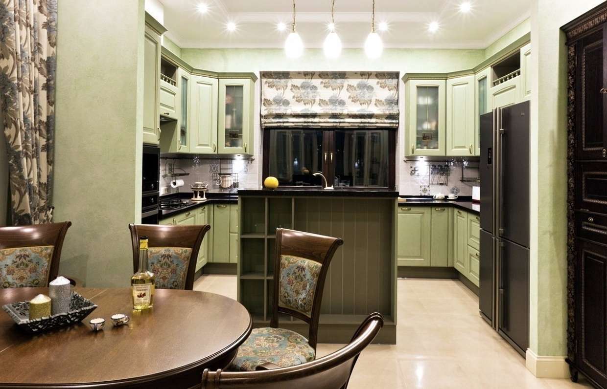 П-образная форма будет хорошо работать на прямоугольных кухнях, а на четных сторонах — в квадратных