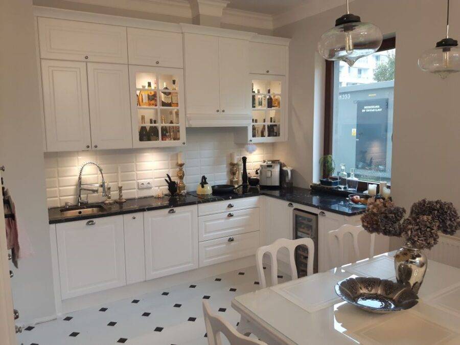 Белая плитка подойдет для тех, кто голосует против экспериментов в интерьер кухни, считая этот помещение символом традиционности жилища.