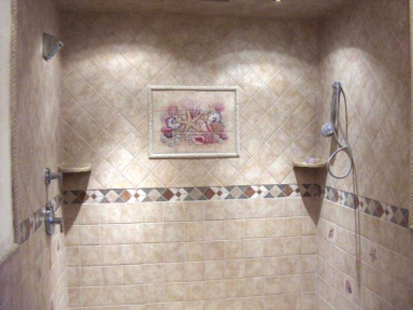 При желании и свободном времени в ванной комнате можно делать произведения искусства из плиток. Есть люди, создающие в ванной картины из плиток. Это трудно, но в принципе можно сделать. И делают порой замечательные орнаменты из плиток.