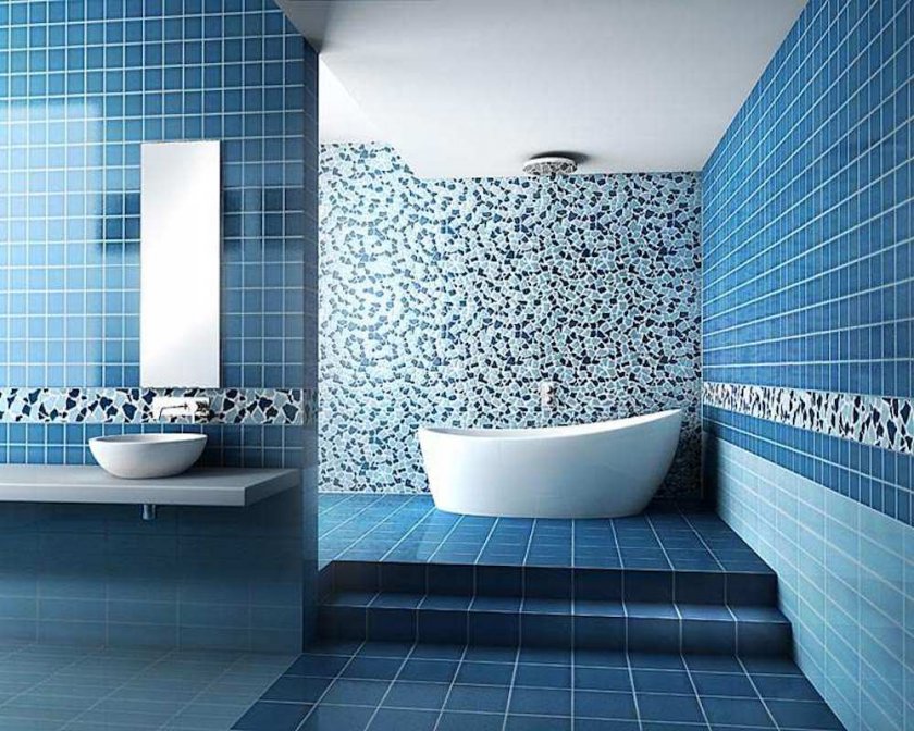 При реализации проекта можно воспользоваться готовыми идеями дизайна интерьера. Оригинально выглядит комбинирование 3 типов плит при отделке поверхностей, используются блоки прямоугольные средних габаритов, квадратные элементы и мозаичная кладка. Оттенки должны соответствовать выбранному стилю и тональности гаммы. При реализации схем необходимо учитывать комплектацию ванной.