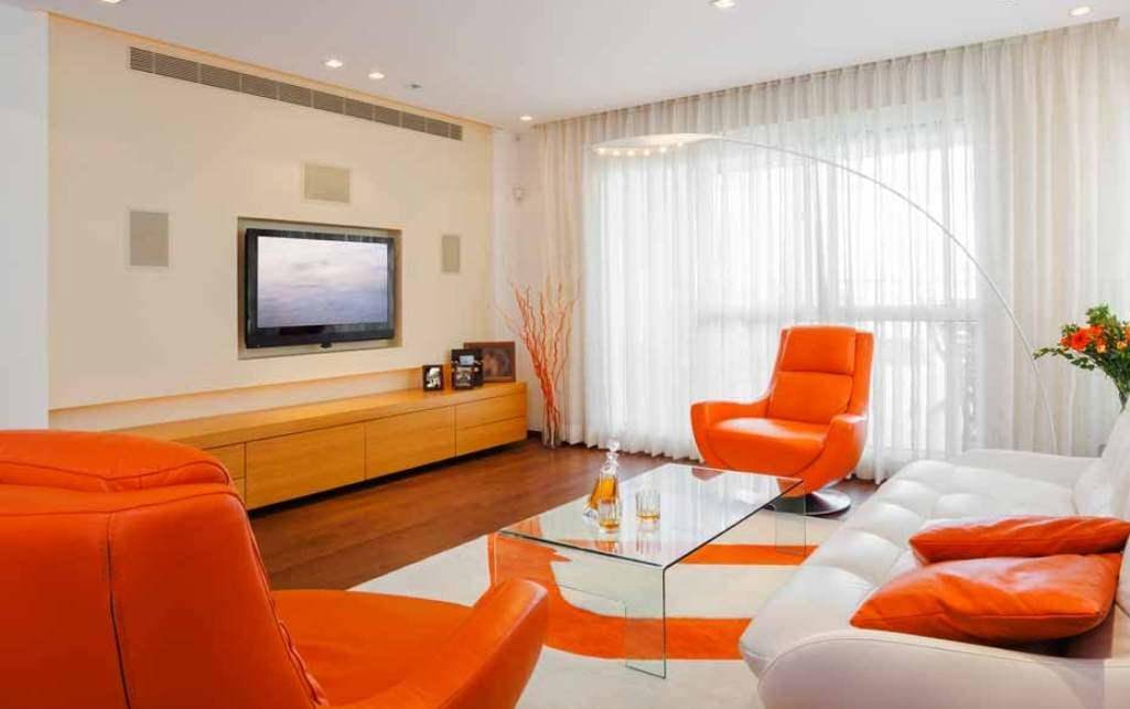 . От размера диагонали телевизора зависит, насколько завершенным и привлекательным будет интерьер прямоугольной гостиной. Чем она больше, тем лучше будет смотреться гостиная. Если поместить на длинную стену маленький телевизор, она будет казаться пустой.