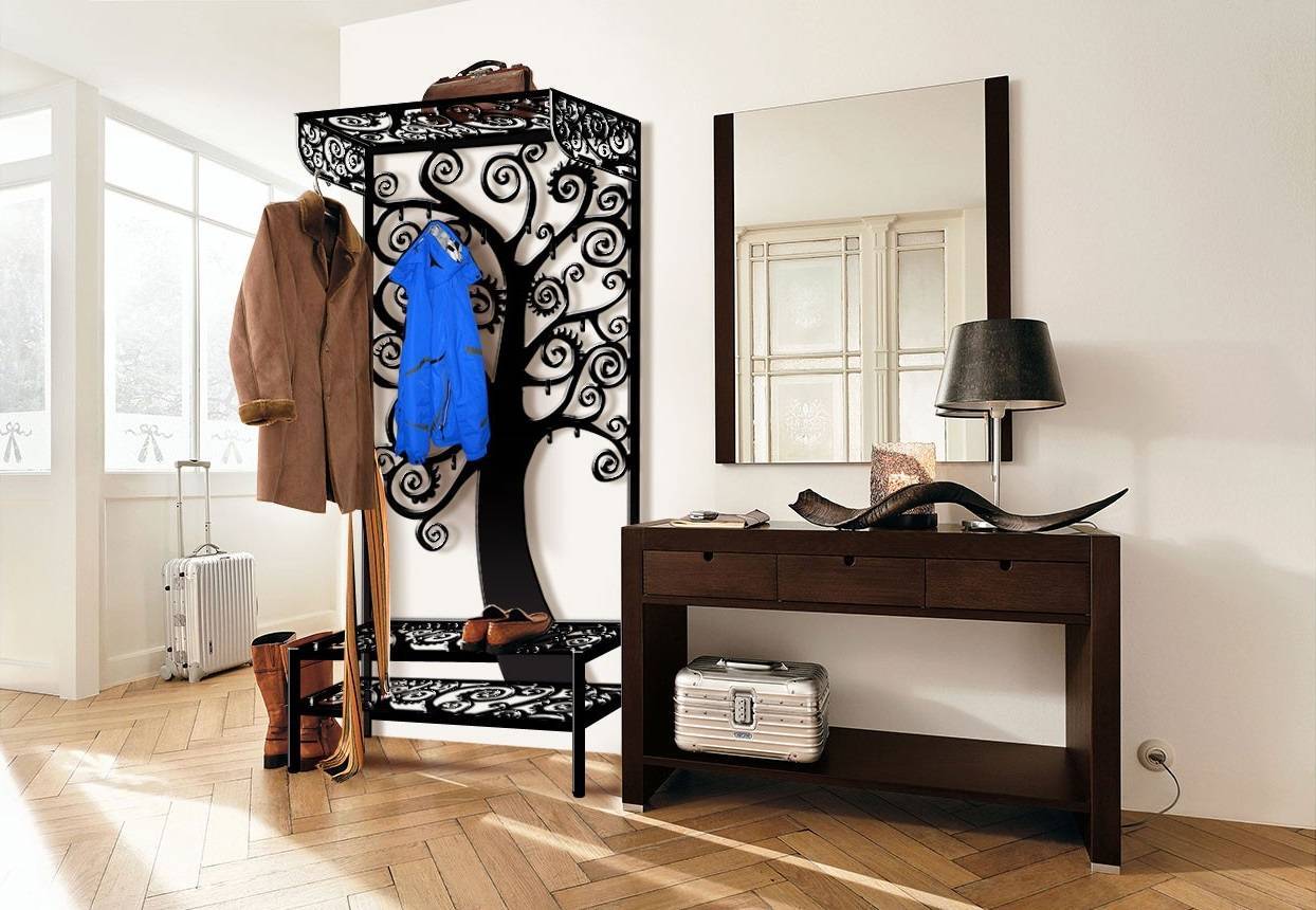 В малогабаритный интерьер отлично впишется напольная вешалка.