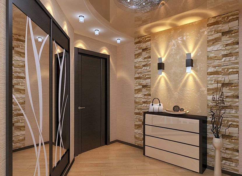 Чаще других в общий интерьер коридора и гостиной вписываются следующие материалы: