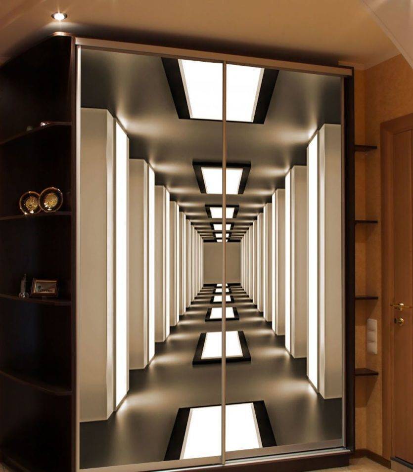 - фотопечать – рисунок будет цветным, но зеркальное полотно при этом останется гладким.