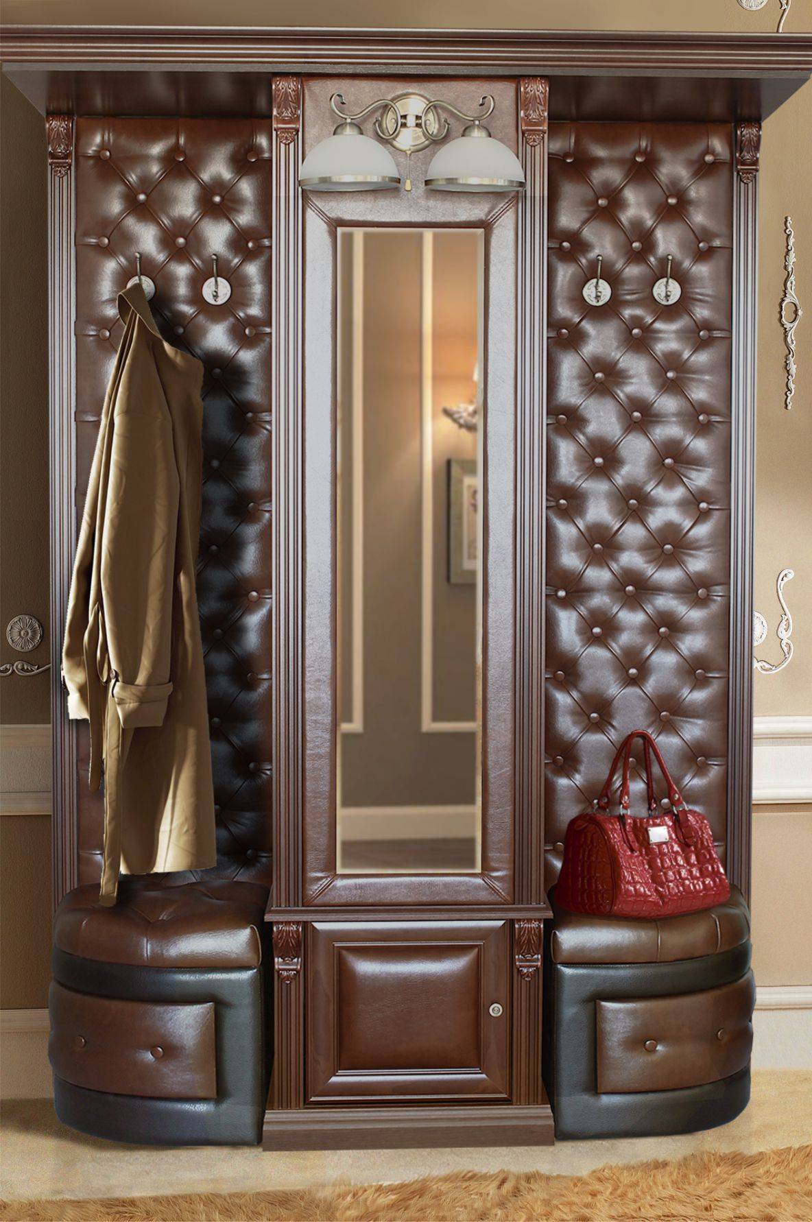 7. Тренд этого года — зеркальная мебель. Почему бы и нет? Зеркальные полочки, вешалки, ключницы в интересном исполнении добавят вашей прихожей современности и оригинальности.