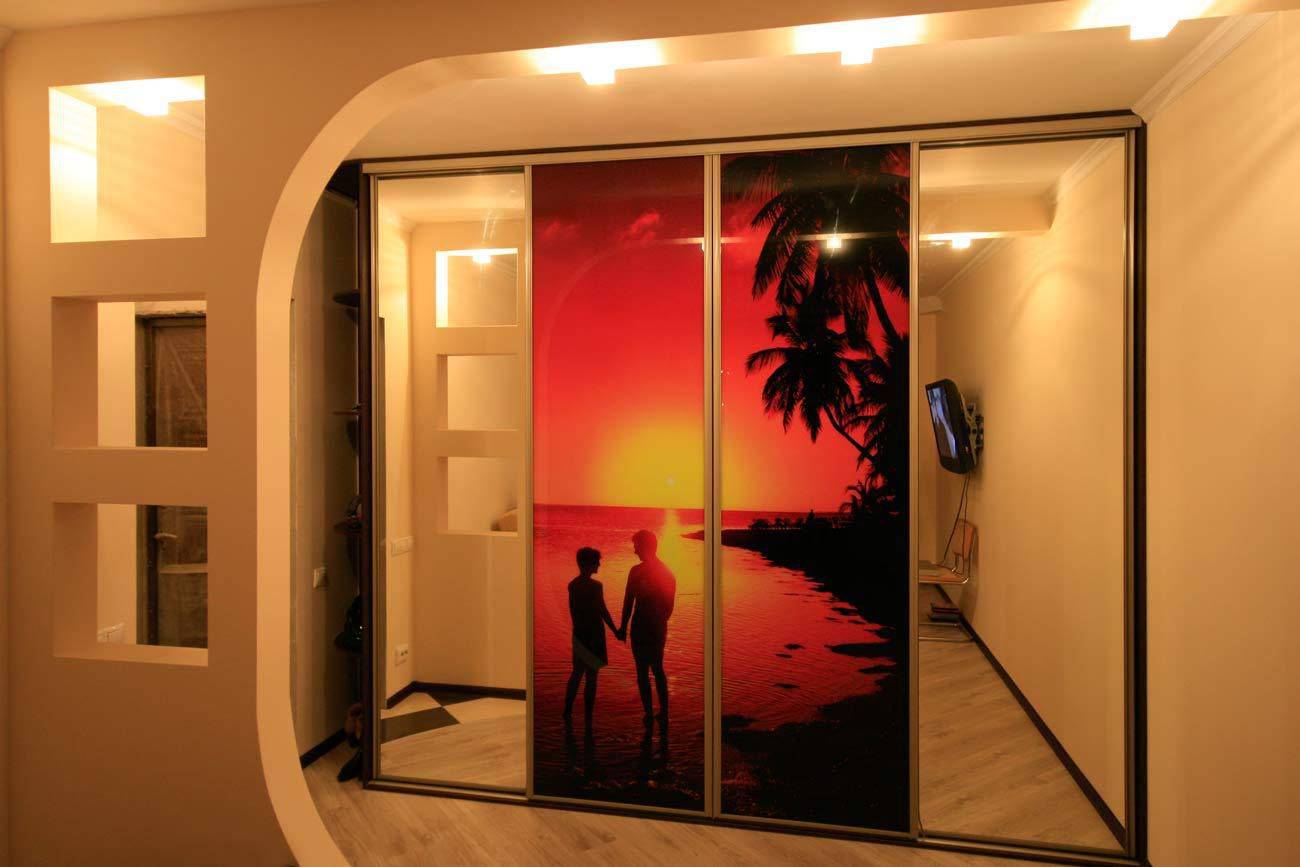 В современном мире очень модно делать встраиваемые шкафы с зеркалами на всю стену. Этот прием можно использовать при наличии маленькой прихожей, которая визуально расшириться с помощью зеркал