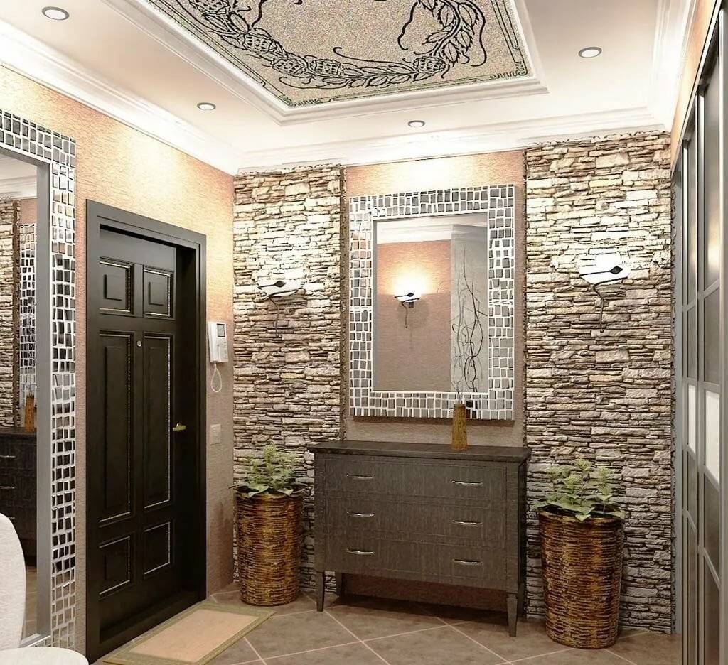 5. Современным и модным решением будет применение зеркальной настенной плитки, которая добавит света в прихожей и визуально расширит ее.