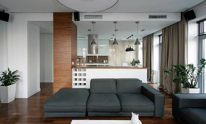 В такой квартире кухонная зона объединена с гостиной, спальней. При приготовлении пищи появляются различные запахи, пары, насыщенные жирами. Необходимо исключить их распространение по всему помещению. Справиться с такой задачей может только качественная, эффективная вентиляционная система