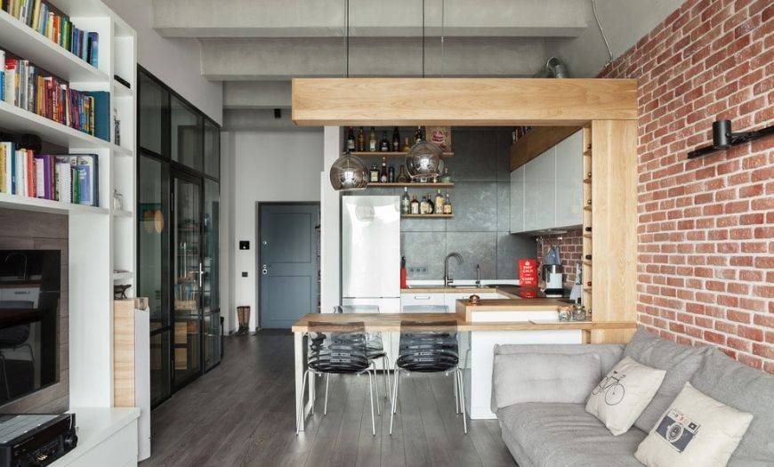 Барная стойка — стандарт. Удобное и современное решение, многократно протестированное на практике.
