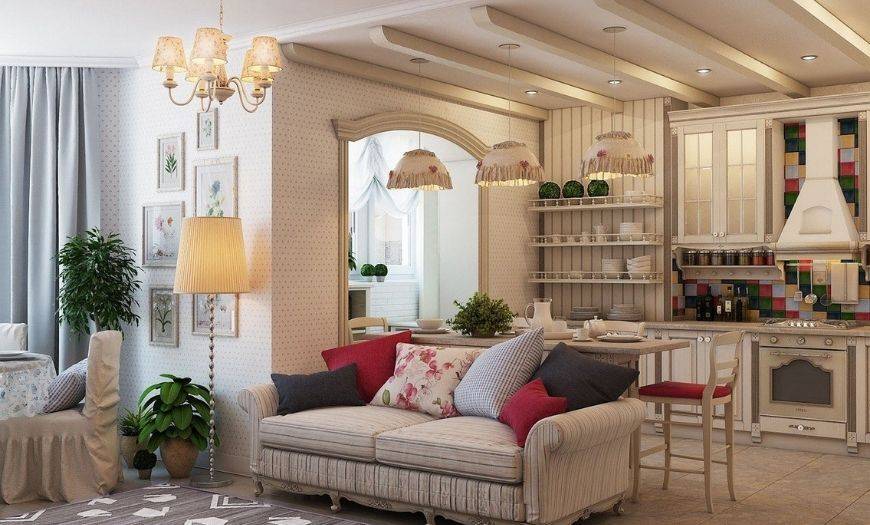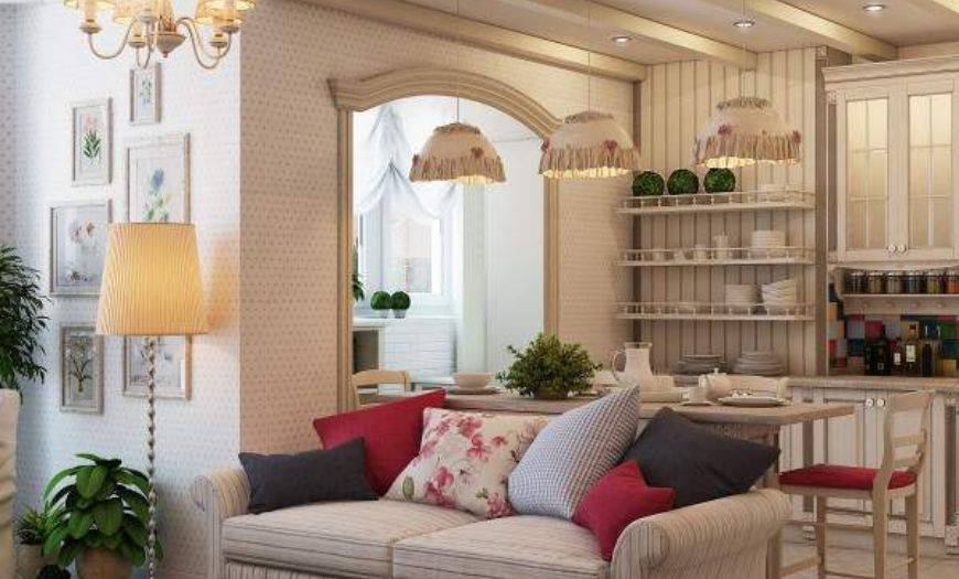 Главная особенность — домашний уют и комфорт. Светлые тона, легкий текстиль, натуральные материалы, простые закругленные формы и линии, обилие полезных безделушек и хендмейд-аксессуаров в качестве украшений помогают добиться этого эффекта. Большое окно, обеспечивающее натуральное освещение, станет хорошим дополнением и сделает квартиру еще более уютной.