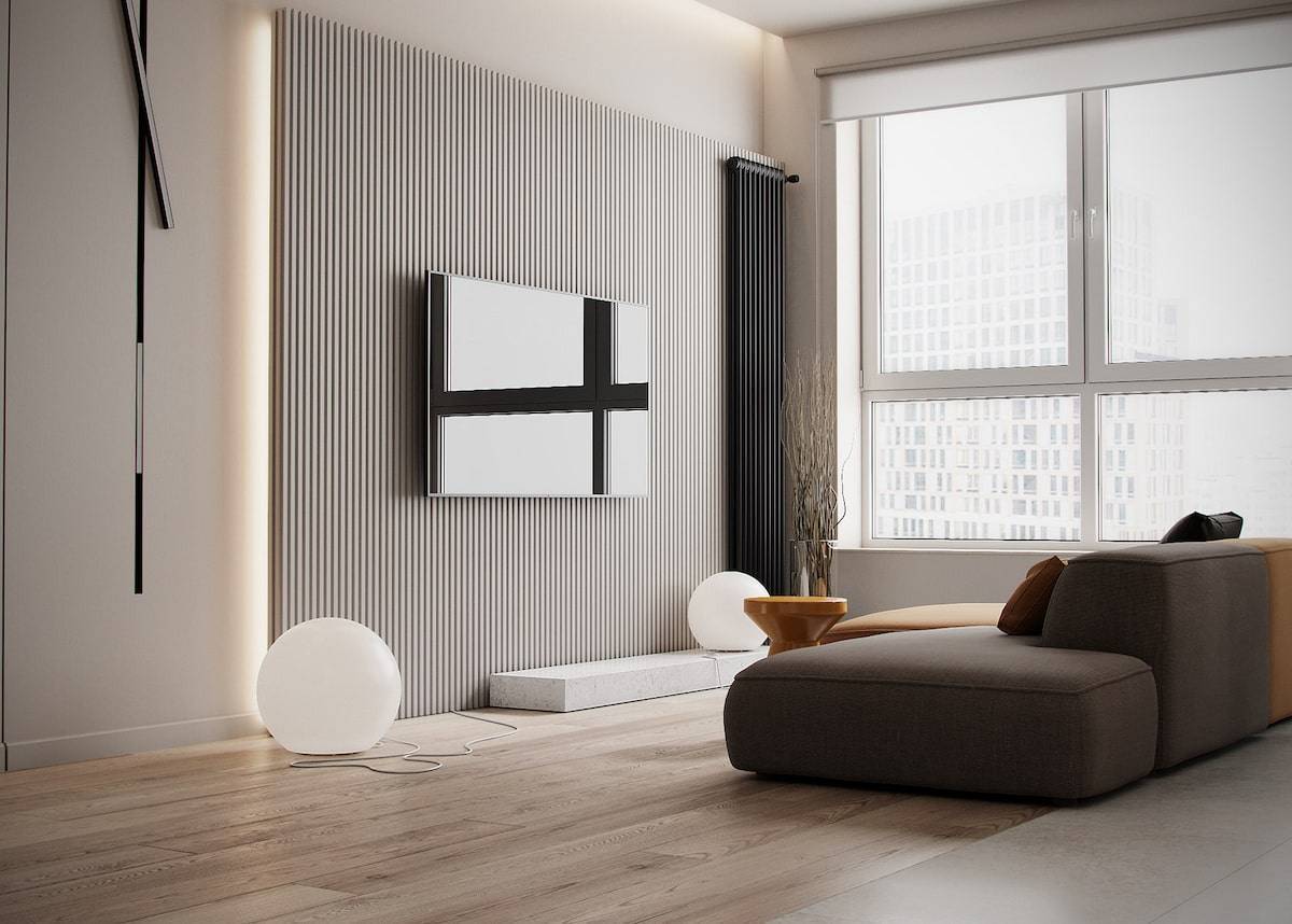 Солнечная двухкомнатная квартира в белых и нейтральных тонах