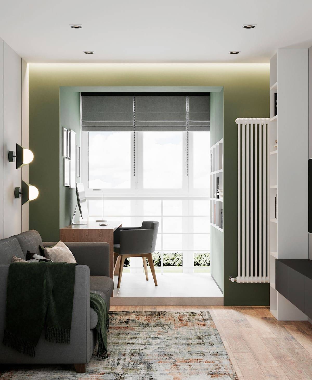 Планирование небольшого кабинета в примыкающей к спальне лоджии