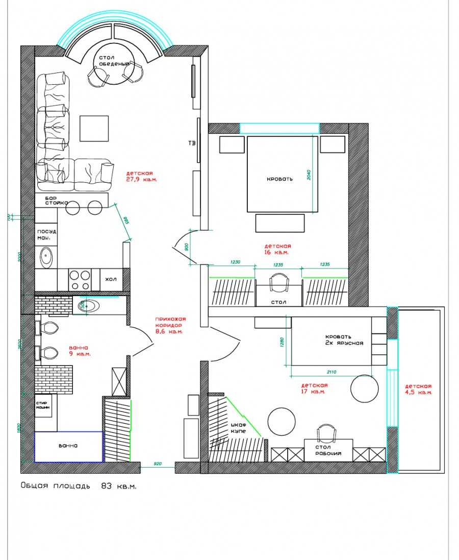 С соблюдением масштаба, на схему вносится вся мебель, сантехника, а также при необходимости разводка труб и проводки. В процессе могут возникнуть несоответствия, потребуется перестановка того или иного объекта. Именно на эту задачу и направлен дизайн-проект, поскольку позволяет увидеть проблемы еще до начала ремонтных работ.