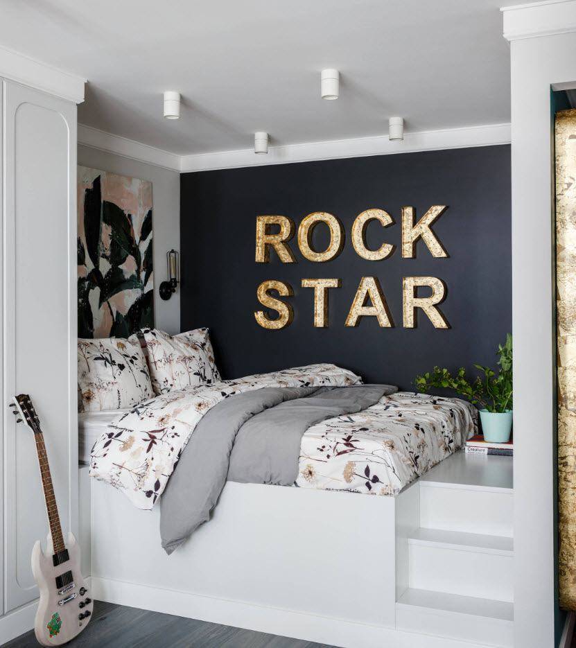 Еще один прекрасный вариант это создание подиума, можно просто положить матрас и кровать готова. Он может содержать встроенные ящики, также иметь ступеньки, что сделает его очень функциональным. К тому же это поможет поместить рабочее место.