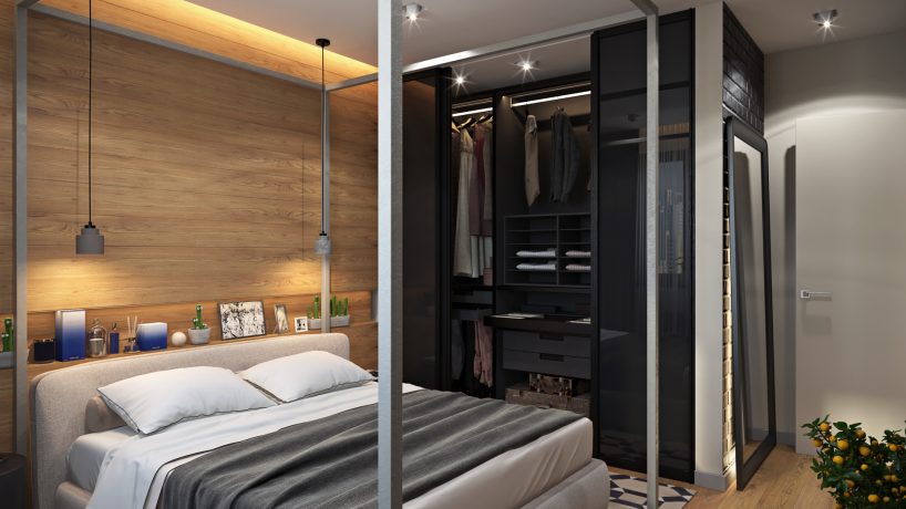 Некоторые отказывают от стиля лофт, так как гардеробная кажется неуютной. Однако, если при оформлении всего помещения придерживаться одного направления, такая гардеробная гармонично впишется в интерьер, а спальня получится уютной и функциональной.