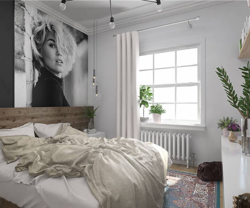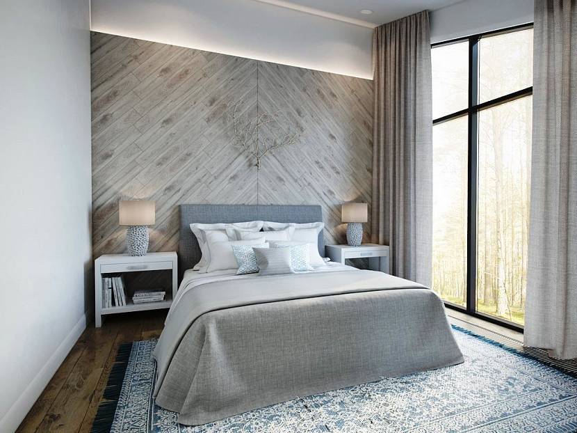 В спальне лучше избегать ненужных фигурок и безделушек. Завершит композицию уютные аксессуары: постельное белье, гармонирующее с интерьером, мягкие подушки, коврики и пушистый коврик или ковер.