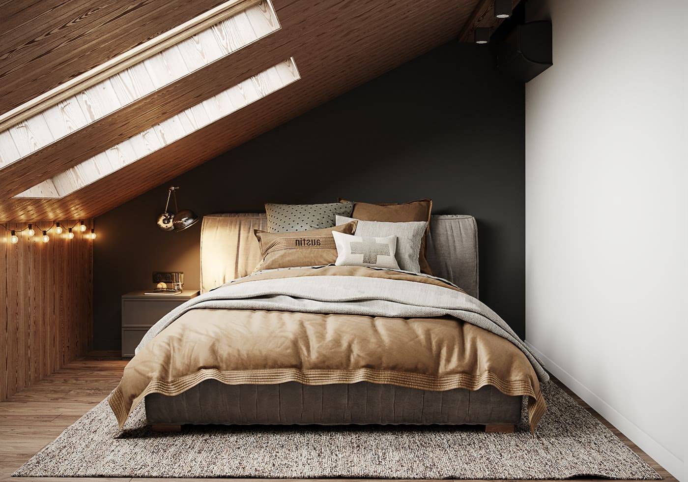 Декор и украшение для спальни на мансарде