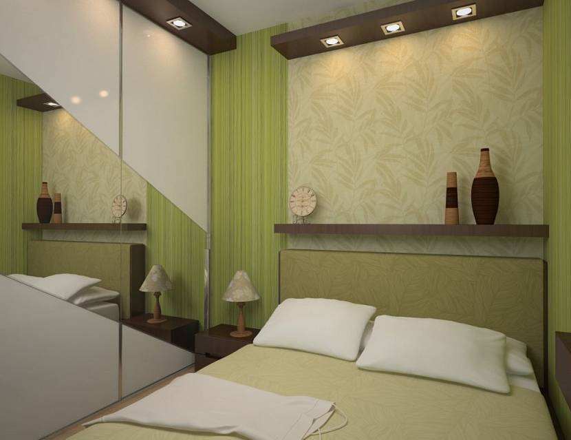 Маленькая спальня в зеленых тонахИсточник modernplace.ru