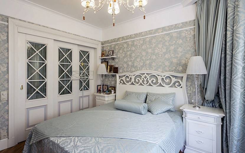 Это спокойная цветовая гамма и натуральные материалы. На пол можно положить паркет или ламинат, выбрать для поклейки бумажные обои с вертикальным рисунком, цветочным принтом или однотонные, а потолок сделать белым. Сюда хорошо впишется и простая деревянная мебель коричневого цвета, и кровать с кованым изголовьем. В классической спальне должно быть много текстиля и предметов декора.