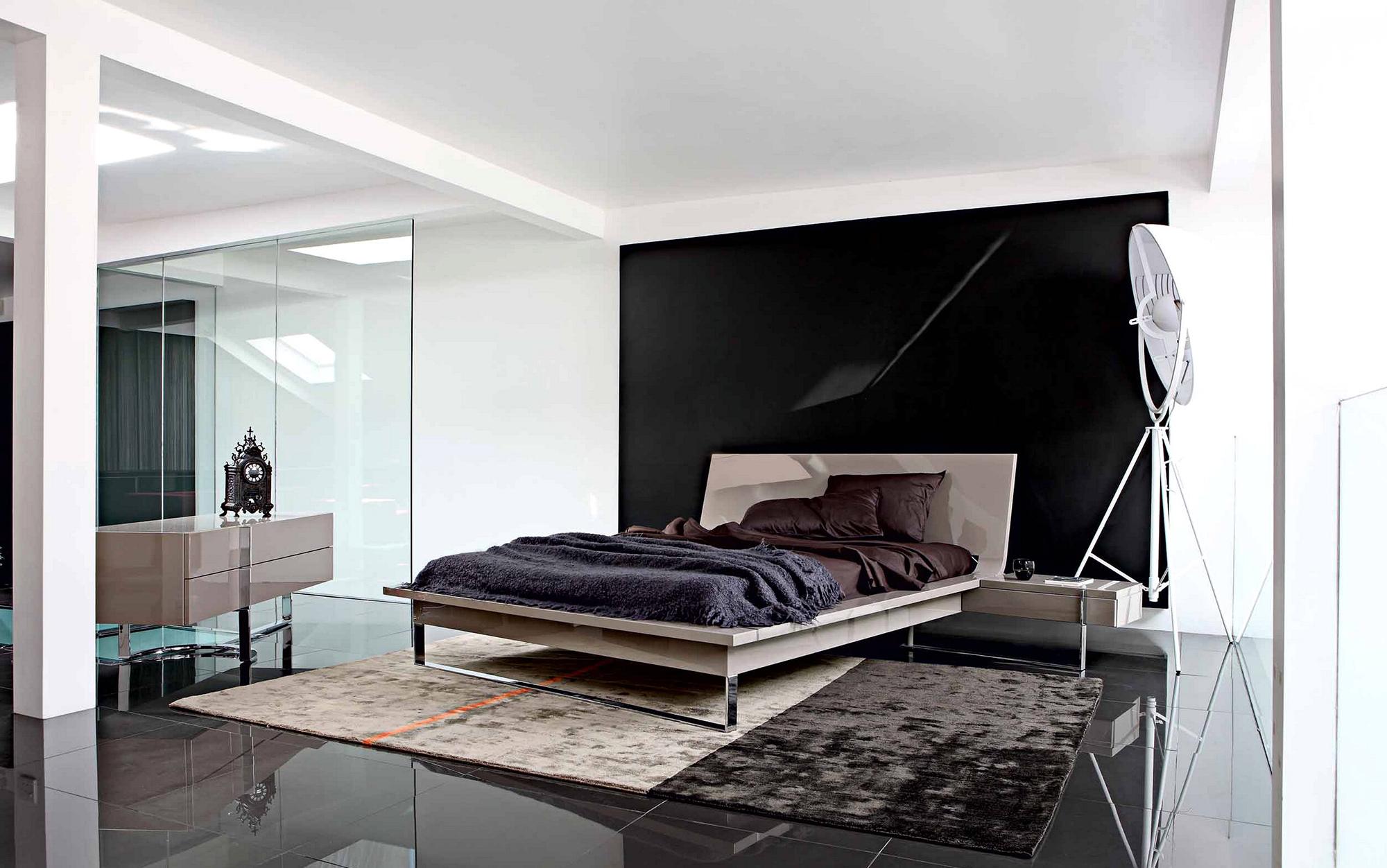 Бежевый, коричневый, белый и черный цвета в минималистичной спальне