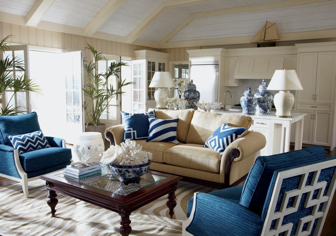 Интерьер в бежевых и синих тонах