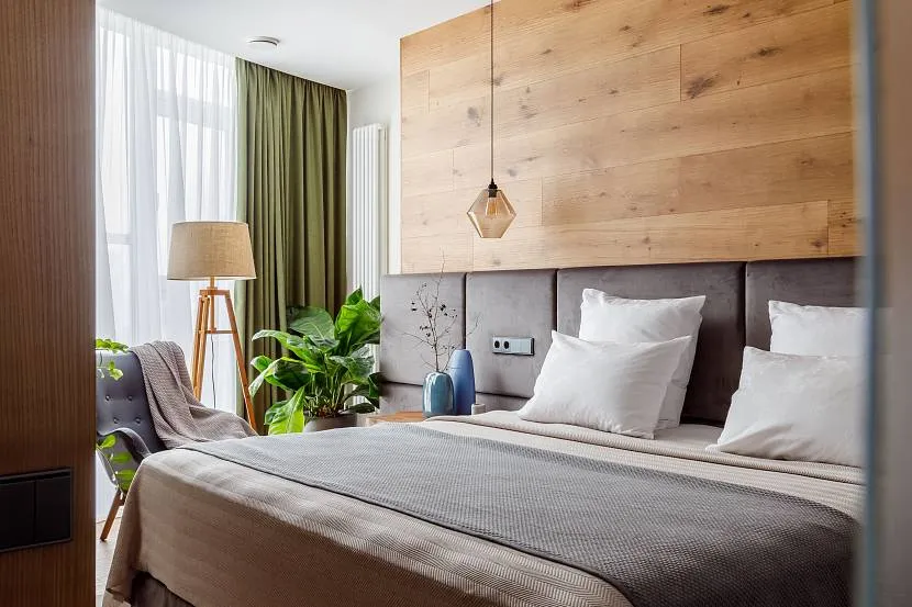 Бежевая спальня в экостиле