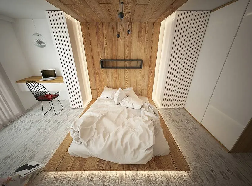 В маленькой квартирке дизайн спальни в бежевых тонах имеет право быть, он нужен для создания изящного контраста в интерьере комнат.